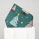 Colores divertidos decoran bonitos árboles de Navidad desfilando sobre este papel tisular de buen corazón. Detrás de los coloridos árboles festivos se esconde un fondo verde azul verde azulado oscuro, con estrellas amarillas y baudias multicolores. Estos son de un patrón de acuarela retro.