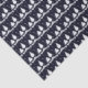 Árboles de pino y papel seda estacional del día de fiesta de la nieve. Este papel seda temático del invierno del árbol tiene un fondo azul marino, con los árboles y el modelo blancos de la nieve. Hay un arco rojo brillante
