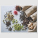 This tissue paper sheet features a vivid, organized display of exotic spices including whole cardamom, cloves, saffron threads, coffee beans, ginger root, and loose tea. Ideal for wrapping gourmet goods or enhancing culinary gift sets with a touch of tradition and flavor.