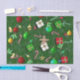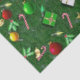 la colección de sistema temático de los artículos y de imágenes del navidad multicolor al azar en un fondo de agujas imperecederas incluye bulbos, los regalos envueltos, los bastones de caramelo, el hombre de pan de jengibre, luces y los ornamentos