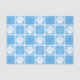 Papel tisú azul bebé claro y blanco con estampado de huellas de patas repetido