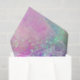 Diseño floral artístico y vibrante con giros orientales brillantes, colores azul, rosa fucsia, verde, púrpura y destellos dorados con una gema de amatista 3D vibrante. Pintura de acuarela con lámina dorada y plateada y gráficos 3D de Bulgan Lumini (c) -Baldesign3d