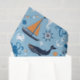 Océano y ballenas náuticas de las características del diseño del tema, veleros anaranjados, pulpo, cangrejos, seahorses, ruedas de las naves, anclas, faros, y más en un fondo azul claro bonito.