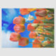 El colorido homenaje a la Primavera es el tema de esta hermosa fotografía que presenta flores de tulipán color melocotón, blancas y amarillas bajo un brillante cielo azul con nubes blancas dispersas. Se puede usar para envolver regalos, así como para desacoplar y otras artesanías de papel.