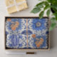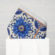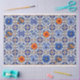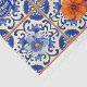 Papel De Seda Baldosas azules con flores naranjas desconchadas