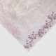Hermosa bailarina bailando en pointe vestida de bailarina blanca. Borde rosa más oscuro a la izquierda con un rosa rosa claro más grande en la parte inferior, y una jaula de pájaros rosa. Espectacular diseño giratorio de flores transparentes de color rosa en la esquina derecha. Perfecto para el papel de descomposición y como material de artesanía floral.