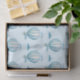 Balón de aire caliente y nubes de color acuático lindo ilustran papel tisular sobre un fondo azul claro.