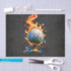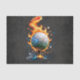 Una brillante bola blanca de golf rodeada de vibrantes y dinámicas llamas en varios tonos rojos y amarillos. La combinación de la fresca elegancia de la pelota de golf y el calor de las llamas crea una fascinante imagen de contraste que simboliza la pasión y la intensidad del golf