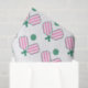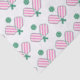 Este papel de envoltura de cumpleaños presenta un patrón de remo de bola de picnic. Los colores son rosa y verde.