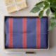 Un diseño clásico y atemporal, las rayas rojas y blancas sobre el azul marino evocan un ambiente náutico o patriótico, añadiendo un acento atrevido y fresco.