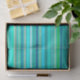 Papel de tejidos en franjas blandas y combinadas en tonos azules, turquesa, acuático y verde marino inspirados en el océano