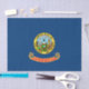 La bandera del estado de Idaho, un emblema simple pero poderoso, fue adoptada oficialmente en 1907. Su diseño, un campo azul con el sello del estado, refleja la belleza natural y la rica historia del estado. El campo azul simboliza los vastos cielos y los abundantes recursos hídricos que caracterizan a Idaho. - En el corazón de la bandera se encuentra el sello del estado, una obra maestra diseñada por Emma Edwards Green en 1890. Este sello, único por ser el único diseñado por una mujer, es una narrativa visual del pasado, presente y futuro de Idaho. Representa la cabeza de un alce, un símbolo de la abundante vida silvestre del estado, y un minero, que representa la herencia minera del estado. Un barco de vapor en el río Snake significa transporte y comercio, mientras que un escudo que lleva el lema del estado, "Esto Perpetua" (Que sea perpetuo), expresa el espíritu duradero de Idaho. Una mujer que sostiene trigo simboliza la Libertad y el Progreso, y un sol naciente representa el brillante futuro del estado. - Tanto la bandera como el sello están en el dominio público, lo que permite su uso y apreciación generalizados. Sirven como poderosos símbolos de la identidad de Idaho, inspirando orgullo y