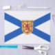Este diseño presenta la bandera de Nueva Escocia, que es una provincia del este de Canadá. Es la segunda provincia más densamente poblada de Canadá y la segunda provincia más pequeña por área, ambas después de la vecina isla del Príncipe Eduardo. Nueva Escocia incluye la isla de Cabo Bretón y otras 3.800 islas costeras. La península que constituye el continente de Nueva Escocia está conectada al resto de América del Norte por el Istmo de Chignecto, en el que se encuentra la frontera terrestre de la provincia con Nueva Brunswick. La capital y ciudad más grande de Nueva Escocia es Halifax.