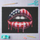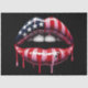 Este fragor y llamativo artículo presenta un primer plano de brillantes labios mordidos con un diseño de la bandera estadounidense muy detallado.