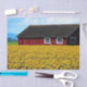 Barn rojo contrabandeado en el campo del papel de los tapetes amarillos