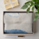 "Las conchas del mar de los océanos de la playa contienen una descomposición azul, un papel en el tejido de peso pesado para la descontaminación o el ajuste de regalo". Pintada a mano en acuarela en un bonito azul y blanco para una decoración fresca y de tendencia en casa. Tipografía de escritura beige muda y fondo de ephemera con madera rústica a la deriva. Todo el arte de la artista y diseñadora con licencia internacional, Audrey Jeanne Roberts. Copyright.