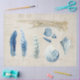 Papel De Seda Beach Ocean Sea Shells Feathers Blue Decoupage