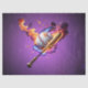 Béisbol en llamas. Diseño potente y dinámico con una brillante béisbol blanco con un punzante punteo rojo en el centro, rodeado de un fondo violeta intenso y brillante. El béisbol parece estar rodeado por las llamas que arden bailando en una mezcla fascinante de naranja, amarillo y azul. Estos colores vibrantes dan a la imagen una energía explosiva e inmediatamente atraen la atención del espectador. Las llamas no sólo parecen envolver el béisbol y el murciélago, sino que también crean una atmósfera llena de acción e intensidad. Simbolizan la pasión y el espíritu competitivo del deporte del béisbol.