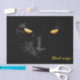 Un bonito gato negro con ojos amarillos hace una impresión mágica de oro en terciopelo negro. Un papel tisular divertido para cualquiera. ¡Personalizable. Puede cambiar o eliminar el texto de la plantilla de acuerdo con sus necesidades y deseos. ¡Diviértete y sé feliz!