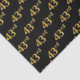 Este diseño de papel tisular presenta el número ordinal "43" con un colorante falso/imitación de color dorado. También tiene un fondo de color negro. Tal vez se podría usar con regalos que se dan para el 43° cumpleaños de alguien, o tal vez para el 43° aniversario de una pareja casada, o para algún otro evento u ocasión 43. [~Z0000152]