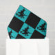 Black witches on a teal and black checkered pattern.