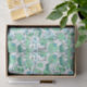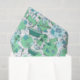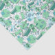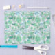 Un personalizado divertido imprime papel de tejido azul/verde con un patrón de belleza adorable y artículos de baño como albornoces, jabón, toallas de baño, burbujas y salpicaduras de agua.