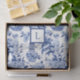 This blue chinoiserie monogram decor features elegant floral vases in classic blue and white with a bold centered initial. Perfect for home styling, this chinoiserie monogram design adds timeless charm and personalized sophistication.