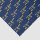 Este diseño de papel tisular presenta el número ordinal "23" con un colorante falso/imitación de color dorado. También tiene un fondo de color azul. Tal vez se podría usar con regalos que se dan para el 23° cumpleaños de alguien, o tal vez para el vigésimo tercer aniversario de una pareja casada, o para algún otro evento u ocasión del 23°. [~Z0000156]