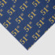 Este diseño de papel tisular presenta el número ordinal "51st" con un colorante falso/imitación de color dorado. También tiene un fondo de color azul. Tal vez podría ser usado con regalos que se dan para el primer cumpleaños de alguien, o tal vez para el cincuenta primer aniversario de una pareja casada, o para algún otro evento u ocasión 51. [~Z0000156]