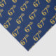 Este diseño de papel tisular presenta el número ordinal "67º" con un colorante falso/imitación de color dorado. También tiene un fondo de color azul. Tal vez podría ser usado con regalos que se dan para alguien que cumple sesenta y siete años, o tal vez para un matrimonio que cumple sesenta y siete años de boda, o para algún otro evento u ocasión del 67. [~Z0000156]