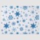 Vibrant blue snowflake pattern on a white background, featuring diverse shapes and sizes. Ideal for winter, holiday, Christmas themes, greeting cards, and festive design projects.