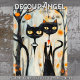 Este diseño de papel de tejido presenta un ilustracion moderno y elegante de dos gatos negros como una pareja elegante. En un entorno contemporáneo, estos compañeros de moda felinos exudan sofisticación y encanto. Perfecto para añadir un toque de elegancia contemporánea a sus proyectos de desconexión, este diseño mezcla el estilo artístico clásico con un toque lúdico y de moda. Ideal para artesanías que celebran el amor y el estilo con un toque felino único.