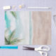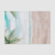 Escena de Playa Pintada Island Breeze, con olas del océano, playa de arena y palmeras, con un hermoso cielo azul teal. ¡Un papel tisú para una boda de verano tropical o de destino! ~ ¡Revisa mi tienda para ver todo el conjunto de la boda para este diseño!