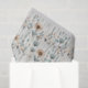 Este diseño sencillo y elegante presenta una gran huella de flores silvestres en tonos rosa pálido, rubor, azul y gris.