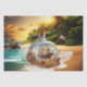 Botella única y maravillosa con barco en una playa tropical.