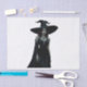 Esta fascinante obra de arte digital retrata a una bruja poderosa con un vestido negro y elegante con ojos rojos brillantes y el gorra de una bruja elegante.