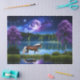 Hermoso caballo belga palomino caminando alrededor de un lago bajo luna llena y cielo estrellado de nebulosa AI Arte generado por minx267