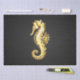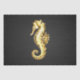 Artístico, poligonal, caballito de mar de chispa, Relieve metalizado dorado sobre fondo negro.