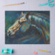 Caballo en tonos azul verde azulado, verde y marrón de la IA Art de minx267