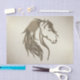 Color inusual sitado silueta marrón grisáceo de cabeza de caballo