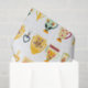 Se organizan en forma de repetición, con un fondo blanco, diferentes tazas coloridas de café y té con diferentes motivos florales y cardíacos. Cada copa muestra una combinación única de colores y diseños, creando una pantalla vibrante y simétrica.