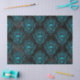 Este diseño de inspiración gótica y de Halloween tiene cráneos verde azulados/azules dentro de marcos lujosos encima de un fondo gris/negro de carbón oscuro. Perfecto para el arte de la desconexión, artesanía de papel o envoltura de regalo. ¡Asegúrate de comprobar la bolsa de regalo correspondiente!