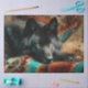 Meet your moody showpiece: a black wolf decoupage for furniture set against a canyon-red and turquoise lodge blanket. The low-light sheen on the onyx coat adds depth without stealing the scene, making it perfect for wide drawer banks, cabinet doors, and armoire panels. Colors play beautifully with deep teal, ember rust, and saddle brown finishes. Printed for crisp burnishing and smooth sealing, it delivers a polished, modern-lodge focal point on dressers, hutches, and sideboards.