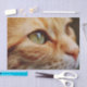 El diseño presenta una fotografía de primer plano de un gato mascota.