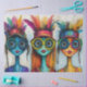 La imagen representa a tres personajes femeninos de golf estilizados, cada uno con sus coloridos y vibrantes tocados de plumas y sus diferentes combinaciones de colores. El personaje de la izquierda tiene un cuerpo azul y usa ropa morada. El personaje medio tiene un cuerpo naranja y ropa azul. El personaje correcto presenta un cuerpo amarillo con ropa roja. La dirección de cada personaje está adornada con una variedad de plumas en colores como verde, rosa, naranja, azul y amarillo. También llevan accesorios de cuentas a juego. El fondo consiste en un patrón texturizado y abstracto en tonos mutados, que contrasta maravillosamente con los colores vivos de los personajes y sus intrincadas direcciones y accesorios. La composición general es llamativa y atractiva para la vista, con dibujos animados y cautivadores, personajes estilizados con tocados de plumas, personajes de cuerpo azul con ropa púrpura, personajes de cuerpo naranja con atuendo azul, personajes de cuerpo amarillo en rojo, intrincados tocados con plumas coloridas, accesorios de cuentas emparejados, fondo abstracto texturizado, colores vivos detalles artísticos, imaginativo y visual diseños de captura