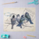Este diseño de postal de época descompuesta incluye dos pares de pájaros cantores azules y grises en una rama con una dirección parisina vintage y marcas postales. ¡Lo suficientemente grande para los traslados de mobiliario!