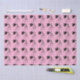 Diseño de corte de madera de un campo de cerezas sobre papel de tejido rosa bonito.