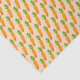 zanahorias naranjas con hojas verdes en un patrón sobre papel naranja para cestas de Pascua.