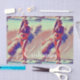 Modelo de chica de playa de Bikini parado en el borde del agua con cola de caballo a personalizar con tu propio saludo, nombre, mensaje, etc