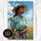 Celebra los campos abiertos y la libertad con este diseño de chica de pradera barrido por el viento. Su vestimenta de gingham verde y su gorra de paja le dan movimiento y encanto a sus flancos de muebles, frontales de cajón de vivero, puertas de gabinete y proyectos de arte en las paredes de una granja.